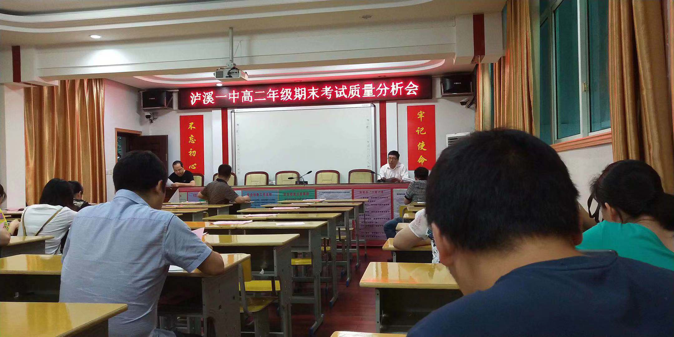 为找出差距,总结经验和教训, 7月15晚上7:00,泸溪一中在科技楼五楼会议室举行高二年级期末考试质量分析会。校长助理贺方卫、教科室主任张昌能、教务处副主任龙明团、高二年级组主任唐宏军出席会议并作了重要讲话,高二年级全体教师参加了本次会议。