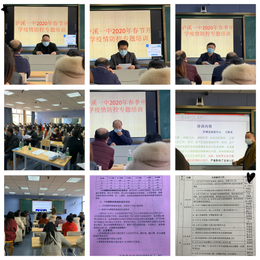 早在开学前,泸溪一中就为开学做了充分的准备工作:准备测温所需相关设备;准备口罩、洗手液,消毒液等物资;为全体高三学生安排宿舍;完成对全校每个角落的消毒消杀工作;要求全体师生每日登记健康情况;4月4日上午9:00,泸溪一中在科技楼五楼会议室召开全体高三年级教师会,对老师进行了防疫知识的培训与应急演练等。